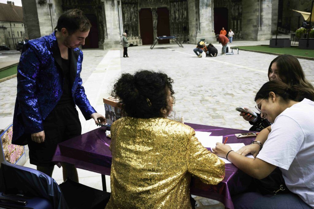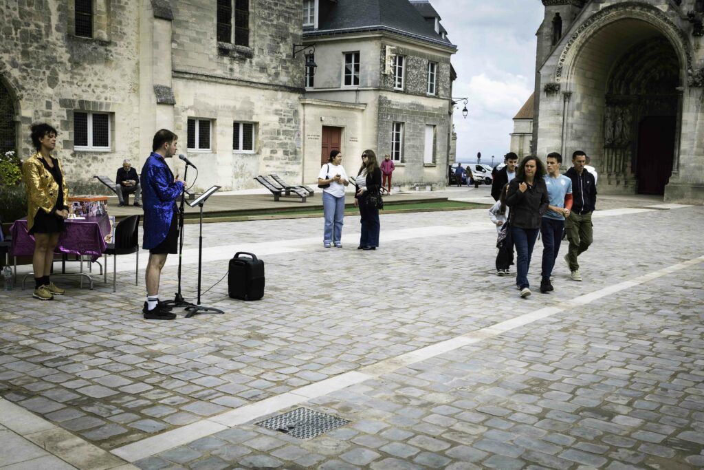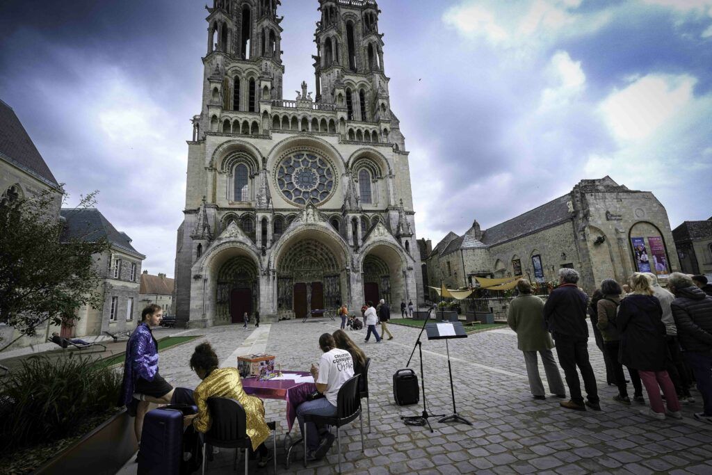 Le parvis de la cathédrale de Laon a rarement résonné de déclarations d’amour aussi diverses. Ce dimanche 21 septembre, dans le cadre des Journées du patrimoine, la compagnie Mordre ta joue y a déployé Très chères Idoles, une scène éphémère de confidences publiques, conçue pour la programmation des Plaines d’Été 2025. Loin d’un simple divertissement, la proposition s’est affirmée comme une réflexion sensible sur la mémoire collective, la culture populaire et le pouvoir fédérateur des admirations partagées.
